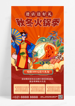 餐饮火锅促销火锅红色背景国潮火锅国潮云朵宣传海报