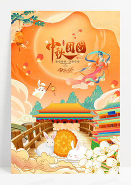 中国风国潮风中秋节月亮灯笼手绘边框元素