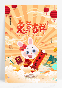 手绘卡通女孩年初一拜大年拿春联免抠元素