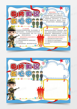 蓝色简约卡通国防知识在心中宣传小报手抄报