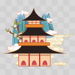 清新中国风建筑国潮手绘元素