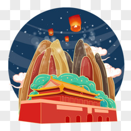 喜庆国潮建筑手绘插画