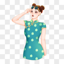 手绘国潮丸子头旗袍美女