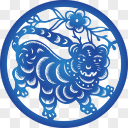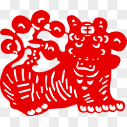 手绘剪纸新年老虎手拿福字免抠元素