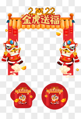 虎年舞狮金虎送服门头地贴素材