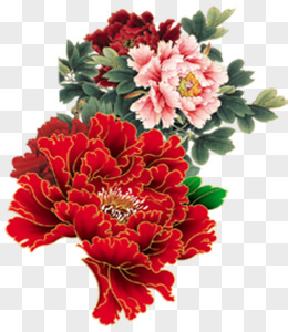 手绘国潮花卉牡丹花免抠元素