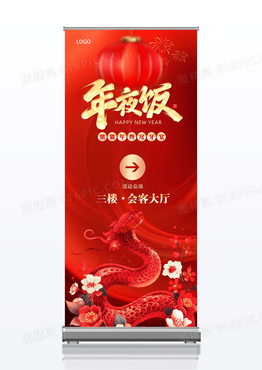 红色2025蛇年除夕年夜饭会客大厅指引牌展架易拉宝