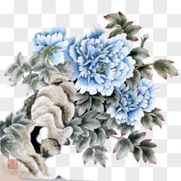 蓝色牡丹花卉花纹图案