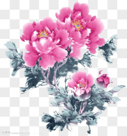 手绘粉色牡丹花元素
