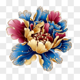 中国风水彩金边牡丹免扣元素