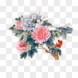 水彩水墨牡丹手绘免抠元素