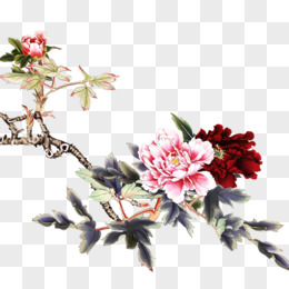 卡通图片卡通古典素材 卡通手绘牡丹枝条