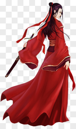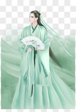 手绘卡通穿民国服饰的女孩插画免抠元素
