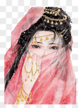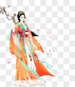 手绘卡通穿民国服饰的女孩插画免抠元素
