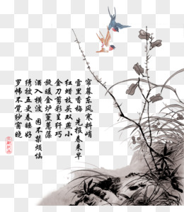 手绘中国风水墨画渔翁在湖面上钓鱼元素