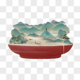 一组国潮风手绘书卷水墨山川插画套图合集元素