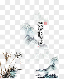 手绘水墨山水画元素