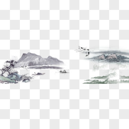 一组手绘国潮风琴棋书画山水组合合集之弹琴元素