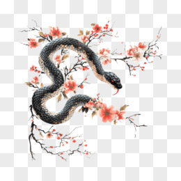 中国风牡丹花和黑蛇免抠元素