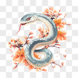 插画风格卡通蛇新年花朵与蛇免抠元素