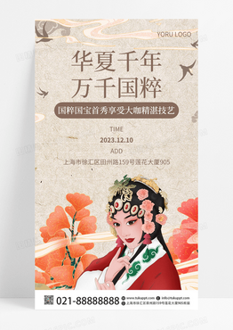 京剧国粹国潮中国风水墨画山水戏曲手机宣传海报