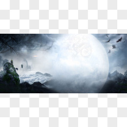 中国风水墨云雾月亮