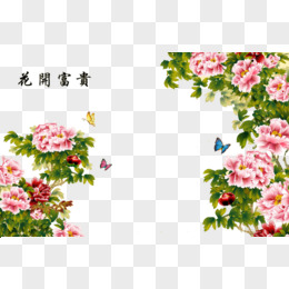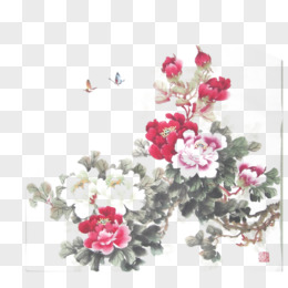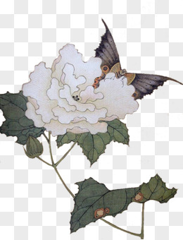 国画花卉素材花卉图片 唯美花朵 蝴蝶