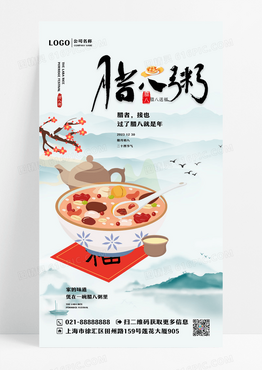 腊八节腊八粥海报迎春国画山水手机宣传海报
