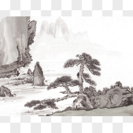 一组手绘国潮风琴棋书画山水组合合集之画卷元素