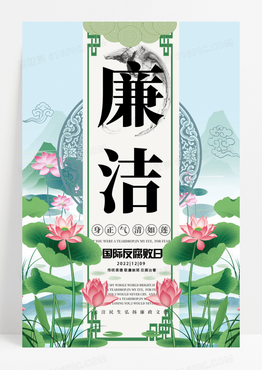 绿色中国风莲花廉洁国际反腐败日宣传海报