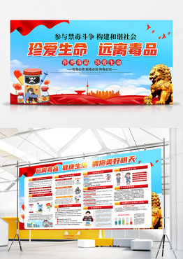 红色时尚大气珍爱生命远离毒品国际禁毒日宣传双面展板