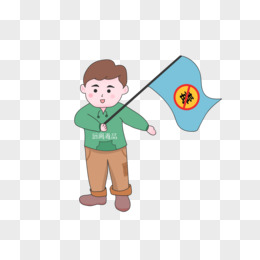 手绘卡通年轻人高举拒接毒品大旗插画免抠元素