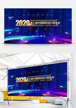 蓝色商务2020第三届中国国际进口博览会宣传展板设计