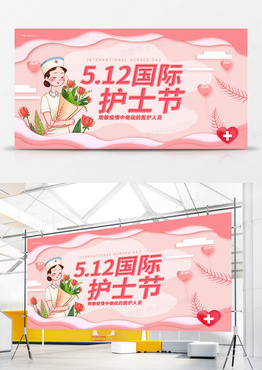 红色剪纸风5.21国际护士节致敬医白衣天使宣传展板