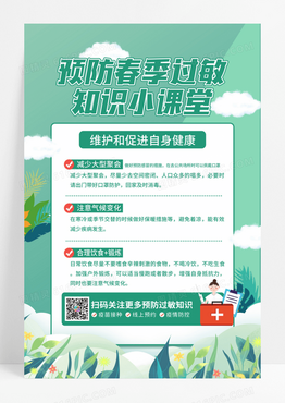 绿色简约大气预防春季过敏知识小课堂宣传海报