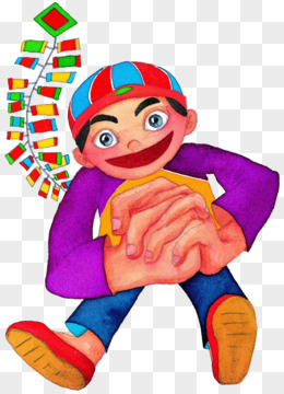 插画新年装饰通用素材小朋友点烟花免抠元素
