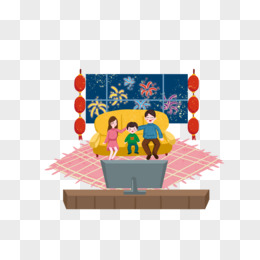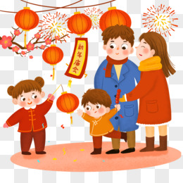 卡通手绘一家人一起逛新年庙会免抠元素