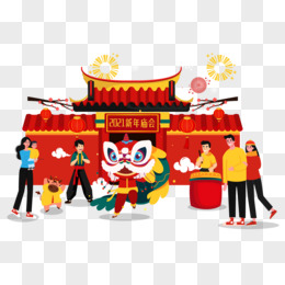 卡通手绘矢量2021新年庙会免抠元素