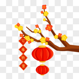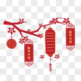 手绘新年树枝灯笼挂饰元素