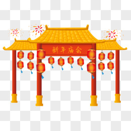 卡通手绘新年庙会建筑物免抠元素