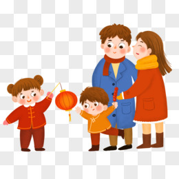 卡通手绘母女一起逛灯会免抠元素
