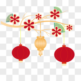 卡通风新年元素三个花朵图案中国灯笼免抠元素