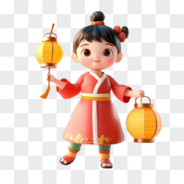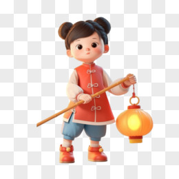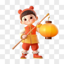 3D小朋友和灯笼免抠元素