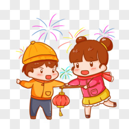 卡通手绘小朋友新年拿灯笼玩耍免抠元素