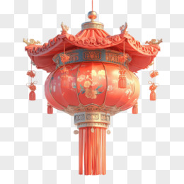 3D卡通新年装饰元素一个六边形灯笼免抠元素
