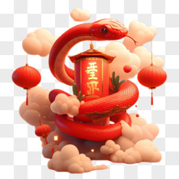 3D卡通新年装饰元素蛇环绕着六边形灯笼免抠元素