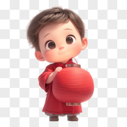 3D卡通新年装饰元素拿着灯笼的小男孩免抠元素