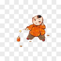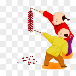 过年习俗男孩女孩放鞭炮手绘卡通元素