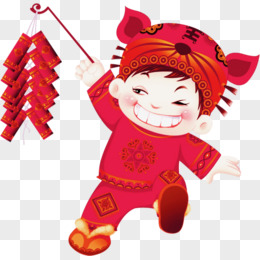 手绘卡通男孩新年放鞭炮免抠元素