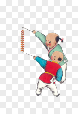 小朋友过年放鞭炮手绘元素